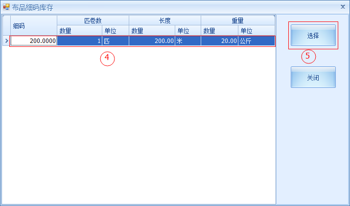 ○2 選擇一條布品庫存數據