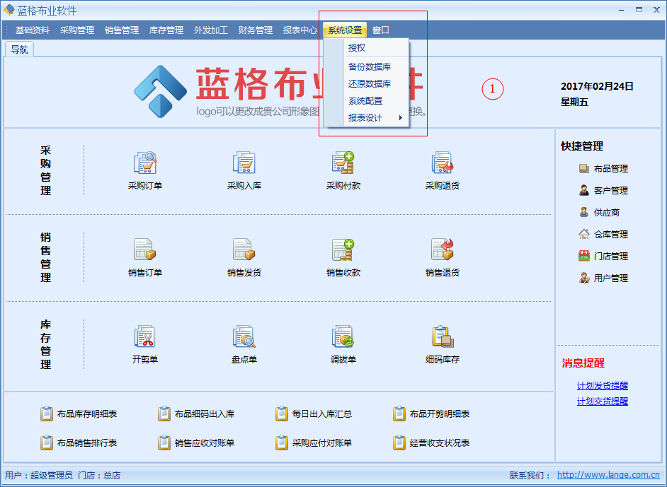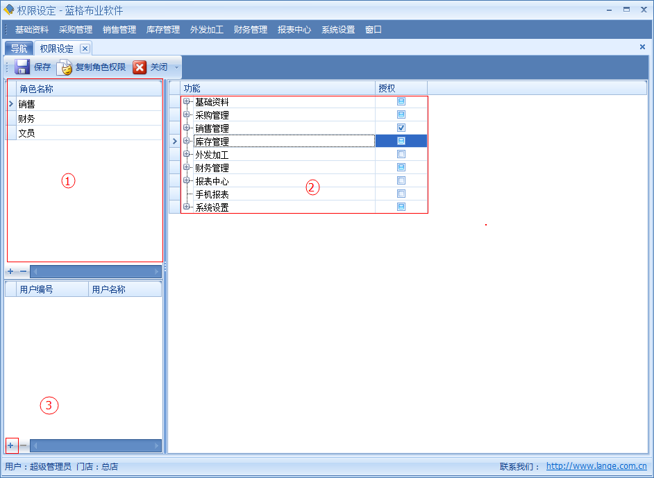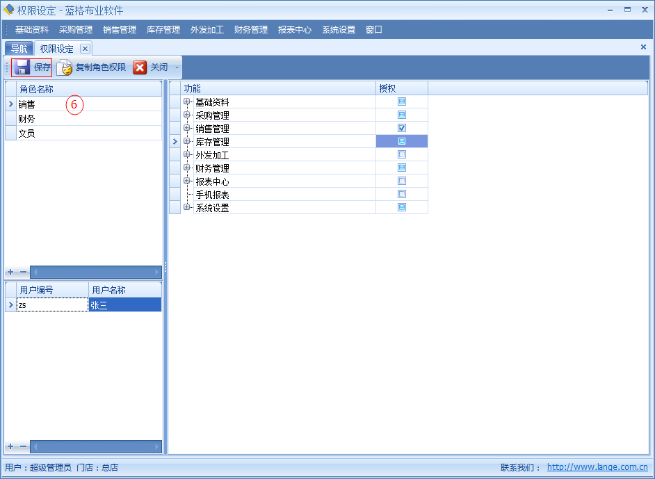 不同的操作用戶應(yīng)該具有不同的操作權(quán)限,避免重要數(shù)據(jù)泄露,在傲藍(lán)布匹管理系統(tǒng)中是如何實現(xiàn)的呢?